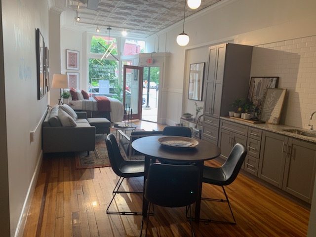 Approximately 530 Sq Ft on the first floor of finished retail space including approximately 150 SqFt of storage in the basement for a total of 680 Sq Ft. This commercial space was formerly a personal training gym equipped with a bathroom, and break room in the basement. This space could be a wonderful space for a wine bar, yoga studio, full-service salon, clothing retailer, the sky is the limit!