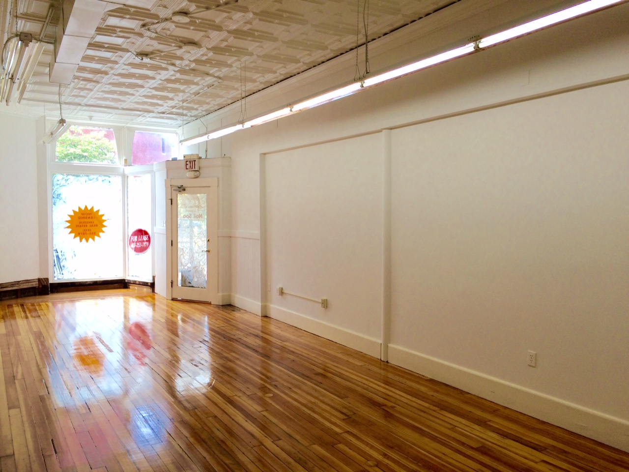 Approximately 700 Sq Ft on the first floor and approximately 150 SqFt of storage in the basement for a total of 850 Sq Ft. This commercial space is currently a retail location, formerly a yoga studio and nail salon with radiant heat and an accessible bathroom. NNN Lease. 5 % tax is approximately $400 per quarter, 5% of the insurance is approximately $550 per year
