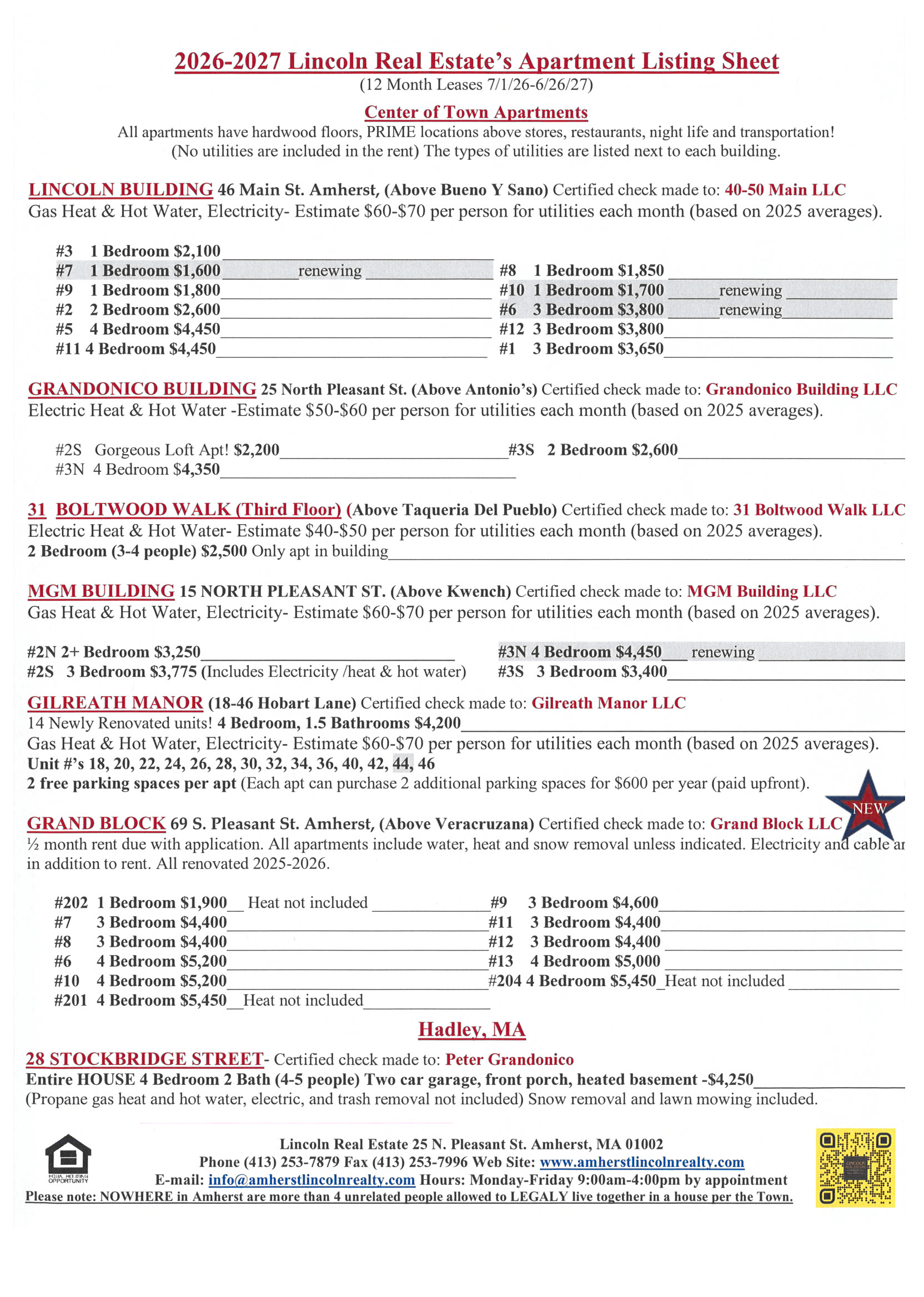 Phone# 413-253-7879 info@amherstlincolnrealty.com Fax # 413-253-7996